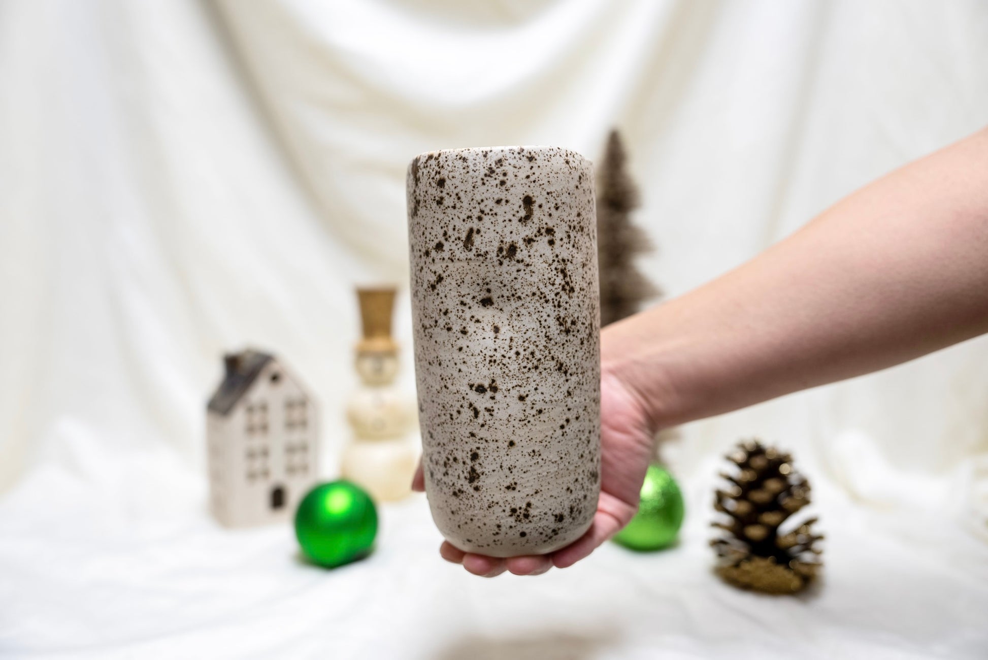 The Birchstone Travel Mug brings the calm simplicity of nature into your daily ritual. Inspired by the textures of birch bark and winter stone, its speckled, matte surface captures the organic beauty of raw clay in its purest form.