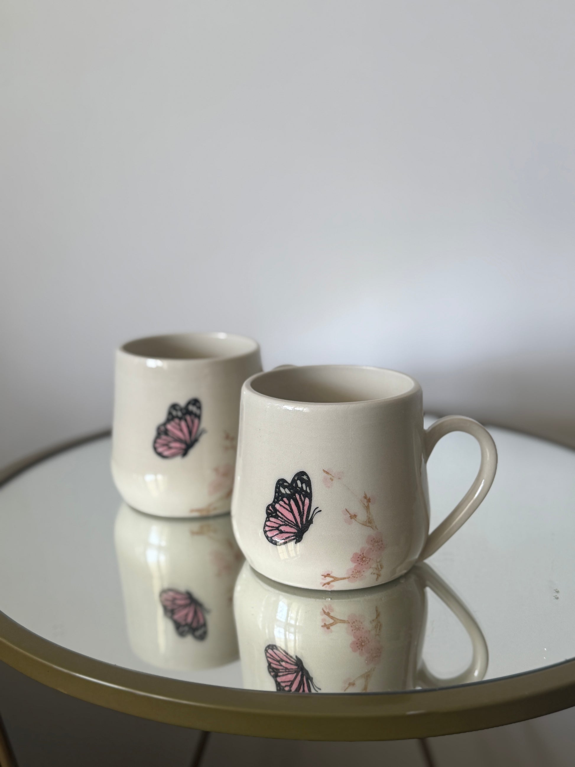 Cherry Blossom & Pink Butterfly – Clear Glaze Mug